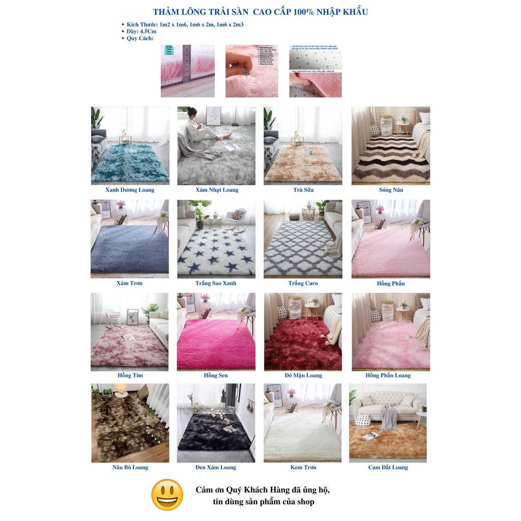 Giới thiệu [Mã LIFE20KALL giảm 10% đơn 50K + QUÀ ] [100% Nhập Khẩu] Thảm Lông Trải Sàn 1m2 x 1m6, 1m6 x 2m3 cho Phòng Khách, Ngủ.
