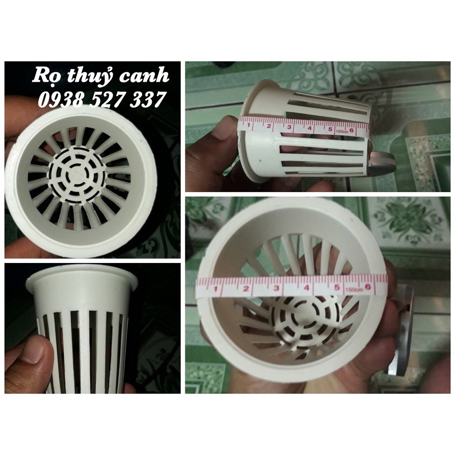 Đây là sản phẩm không thể thiếu khi trồng rau thủy canh. Rọ nhựa thủy canh là vật dụng dùng để đựng giá thể hoặc ươm cây con cho rau trồng thủy canh. Hạt giống sẽ được gieo vào rọ. Sau đó, rọ nhựa được đặt vào ống chuyên dụng trồng thủy canh. Đáy rọ sẽ tiếp xúc với dung dịch dinh dưỡng. Khi hạt giống nảy mầm, rễ cây sẽ chui qua các khe nhỏ của rọ và lấy các dưỡng chất từ dung dịch thủy canh để nuôi cây phát triển.