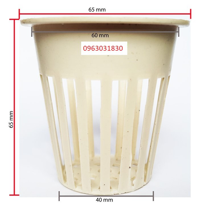 Đây chính những chiếc rọ được làm bằng nhựa PP chuyên dụng trồng thủy canh. Rọ nhựa được thiết kế xung quanh miệng dày hơn, kín hơn, nó cứng hơn giúp đỡ các giá thể như xơ dừa, sỏi và rau không bị rơi vãi ra ngoài. Dưới miệng rọ 2cm là những khe thoáng rộng 5mm tạo khoảng không cho rễ cây rau chui ra ngoài để hút chất dinh dưỡng dễ dàng và rễ phát triển tốt nhất. Với những khe thoáng này khi cây trồng nảy mầm và phát triển, bắt đầu những bộ rễ cây sẽ lọt qua những khe này một cách dễ dàng để hút chất dinh dưỡng nuôi cây. Đồng thời ở dưới đáy rọ cũng là có những lỗ thoáng, lỗ này sẽ tiếp xúc trực tiếp với nước dinh dưỡng, dễ dàng thẩm thấy lên giá thể, giá thể có dinh dưỡng nuôi cây trồng.