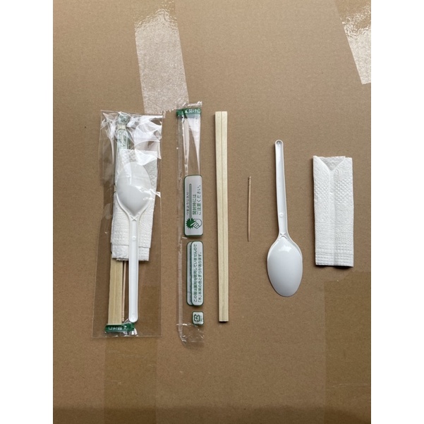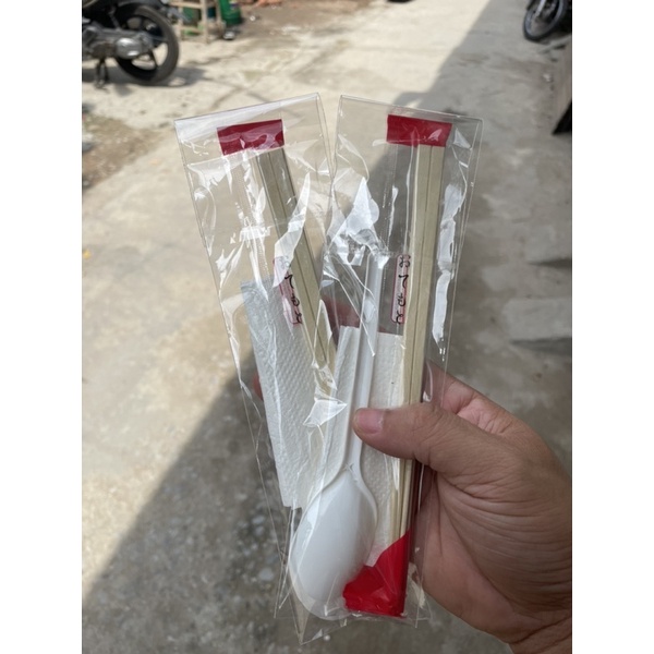 ⚙️ 1 bộ gồm: đũa tách nhật bản + tăm gỗ + thìa nhựa + giấy ăn
