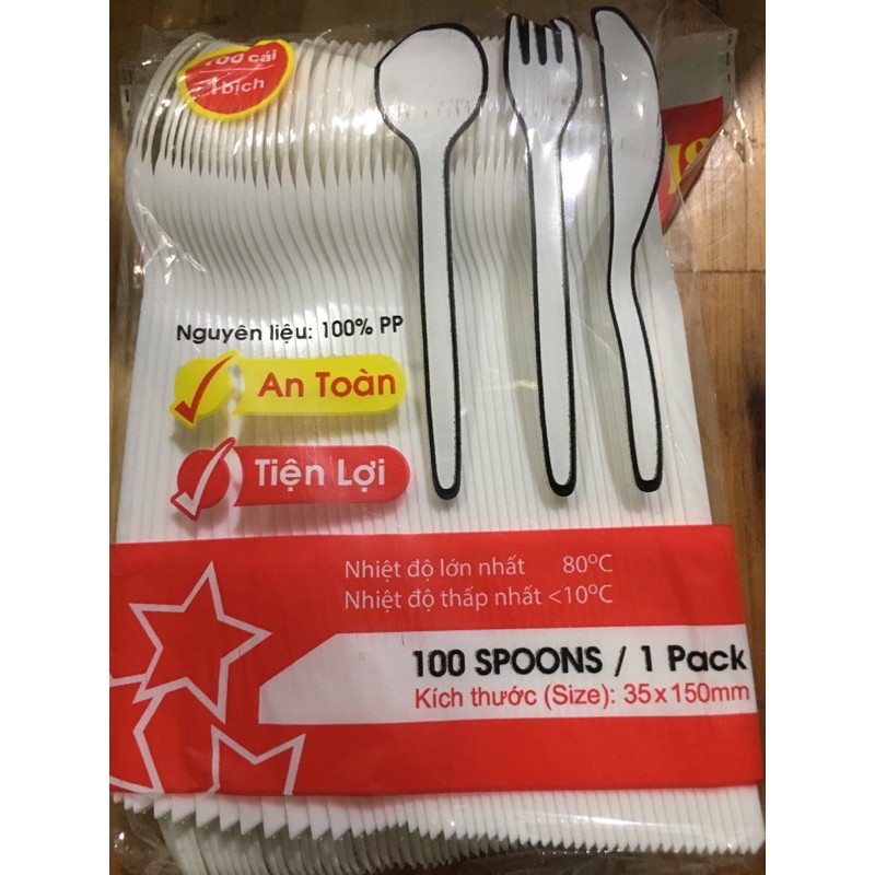 Bịch 100 muỗng nhựa ăn cơm, trà sữa...Sản phẩm hàng Việt Nam chất lượng cao