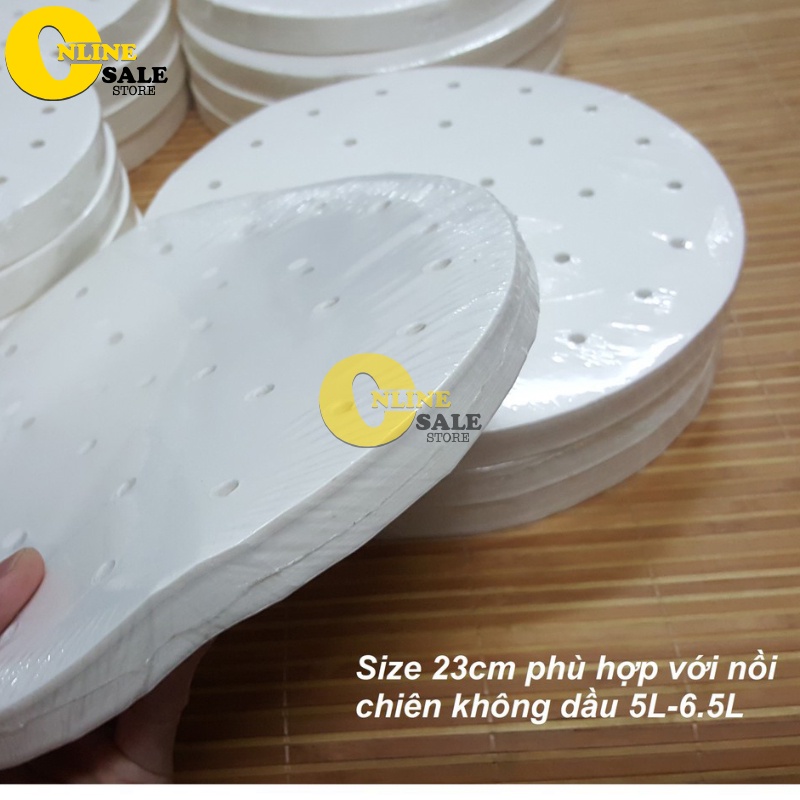 ✔ Size 23cm: phù hợp nồi chiên không dầu 5L - 7L👉 CÔNG DỤNG CỦA GIẤY NẾN ĐỤC LỖ CHO NỒI CHIÊN KHÔNG DẦU