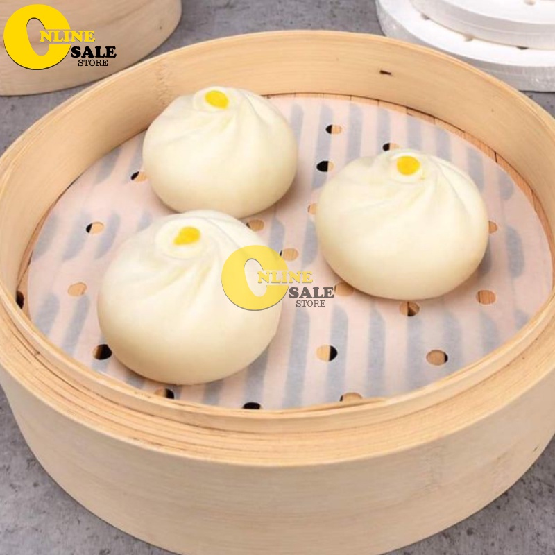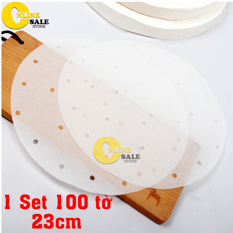 Giới thiệu 100 tờ Giấy nến đục lỗ Giấy nến tròn lót xửng hấp, nồi chiên không dầu, hấp bánh bao