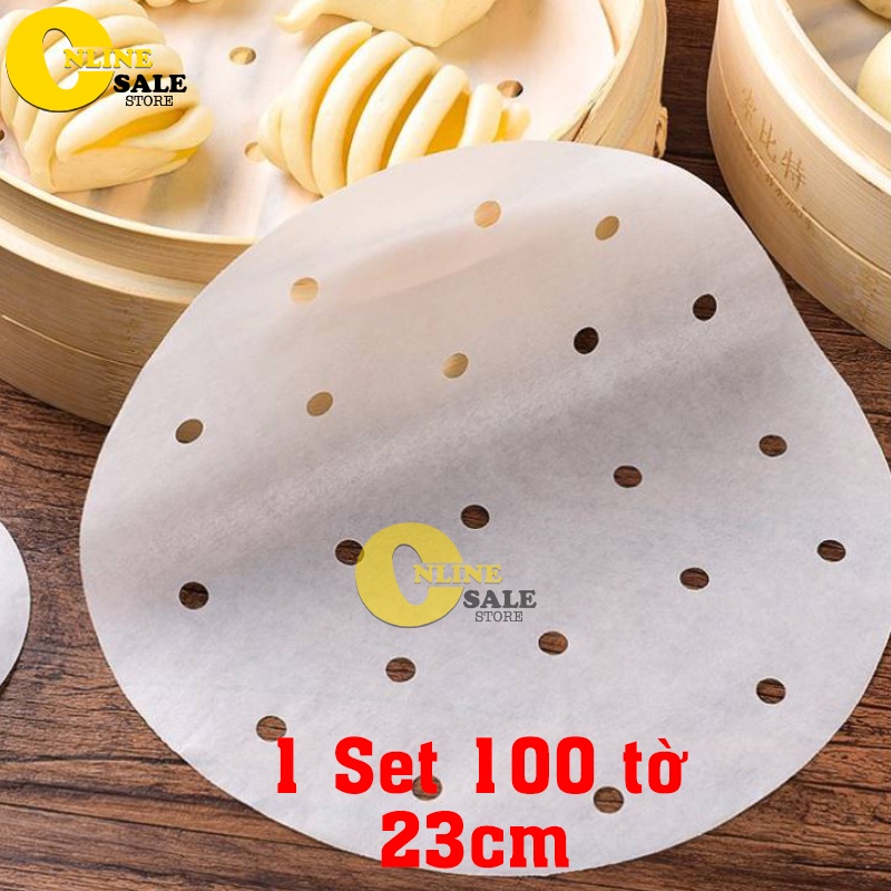 100 tờ Giấy nến đục lỗ Giấy nến tròn lót xửng hấp, nồi chiên không dầu, hấp bánh bao
