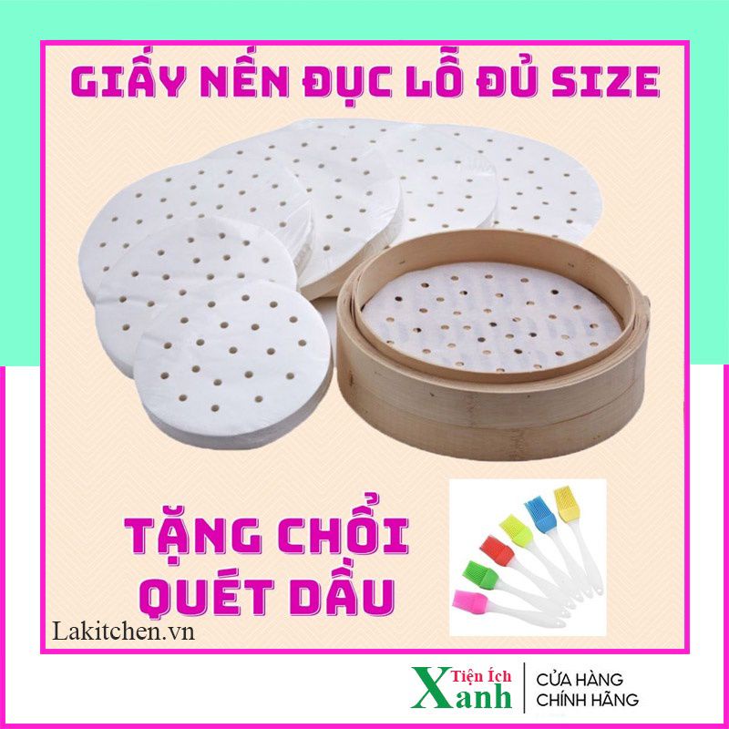 Giới thiệu 100 tờ giấy nến đục lỗ - Giấy nến tròn lót xửng hấp, nồi chiên không dầu, hấp bánh bao, ngô, khoai, sắn (GN21)
