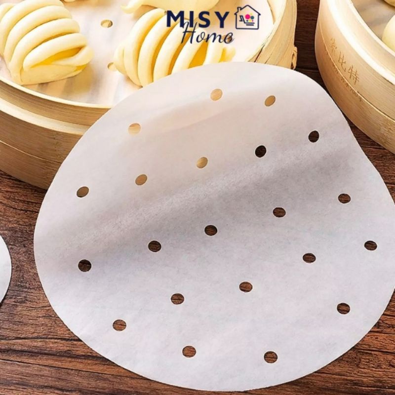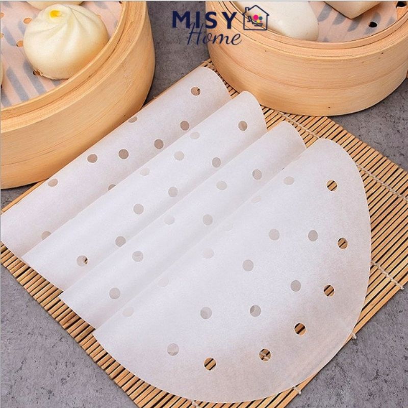 100 tờ giấy nến lót nồi chiên không dầu giấy nến đục lỗ lót xửng hấp, nướng bánh, hấp bánh Misy home