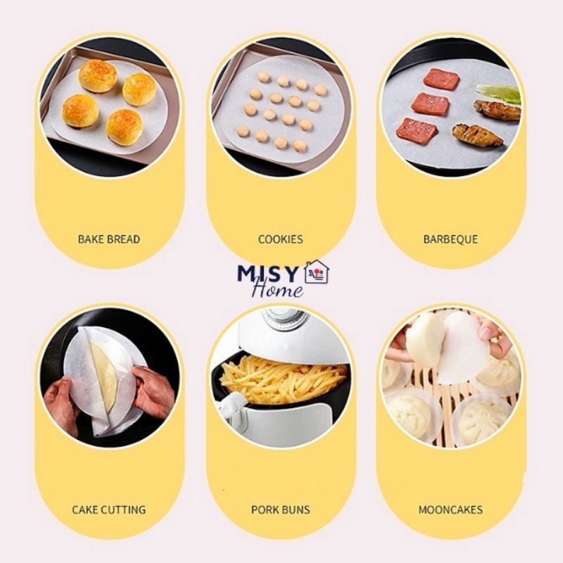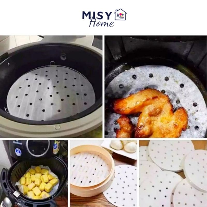 Giới thiệu 100 tờ giấy nến lót nồi chiên không dầu giấy nến đục lỗ lót xửng hấp, nướng bánh, hấp bánh Misy home