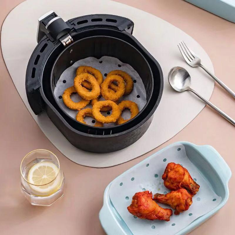 100 Tờ Giấy Nến Nướng Bánh Cho Nồi Chiên Không Dầu Đục Lỗ Tròn Chống Dính Thấm Dầu