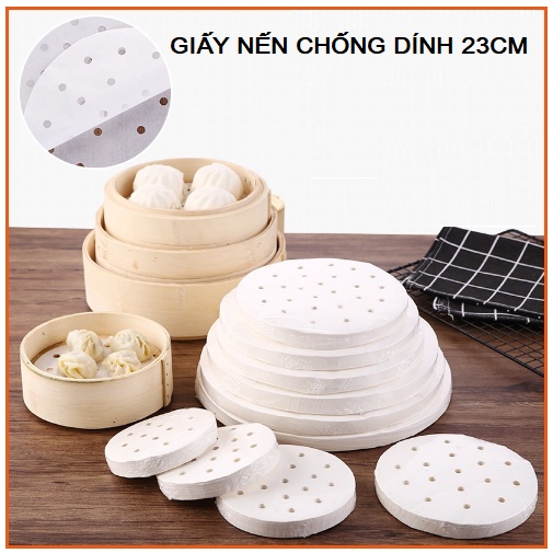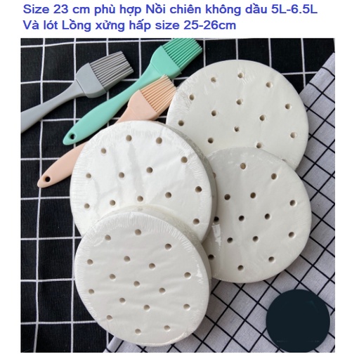 100 tờ giấy nến tròn đục lỗ tráng silicon chống dính lót xửng hấp bánh, nồi chiên không dầu, giấy thấm dầu silicon