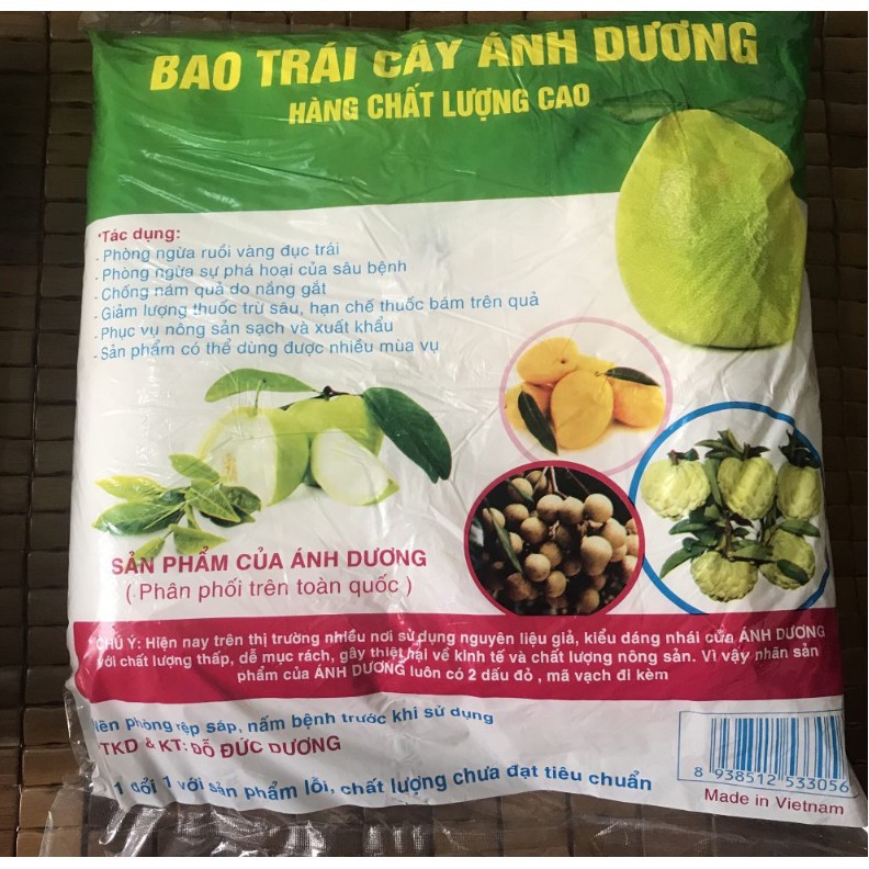 Túi bọc xoài hay còn gọi là bao bọc xoài là một biện pháp phòng chống sâu bệnh vô cùng hiệu quả cho quả xoài vào thời điểm xoài non cho đến khi thu hoạch. Bao bọc xoài còn tránh tiếp xúc ảnh nắng mặt trời trực tiếp vào quả xoài làm quả xoài bị xám và nứt quả. Với Chất lượng tốt, cách sử dụng dễ dàng nhanh chóng cùng với giá thành rẻ thời gian sử dụng kéo dài được 2 năm trong điều kiện thuận lợi , túi bọc xoài quả là một lựa chọn hoàn hảo cho nhà vườn để có được những quả xoài chất lượng nhất.CÔNG DỤNG CỦA TÚI BAO TRÁI :
