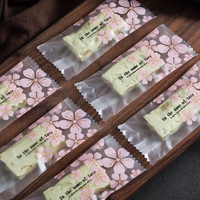 Túi kẹo Nougat hoa đào 200 chiếc, vỏ nougat hàn nhiệtGói 200 chiếc