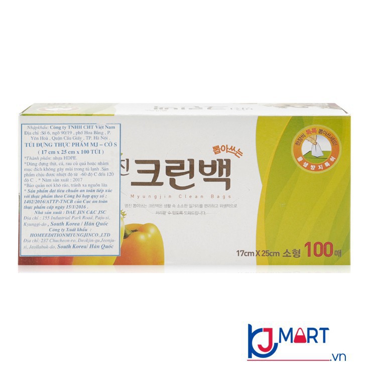 Bộ 100 túi đựng thực phẩm Myungjin sinh học (size 17 x 24cm) cao cấp Hàn Quốc