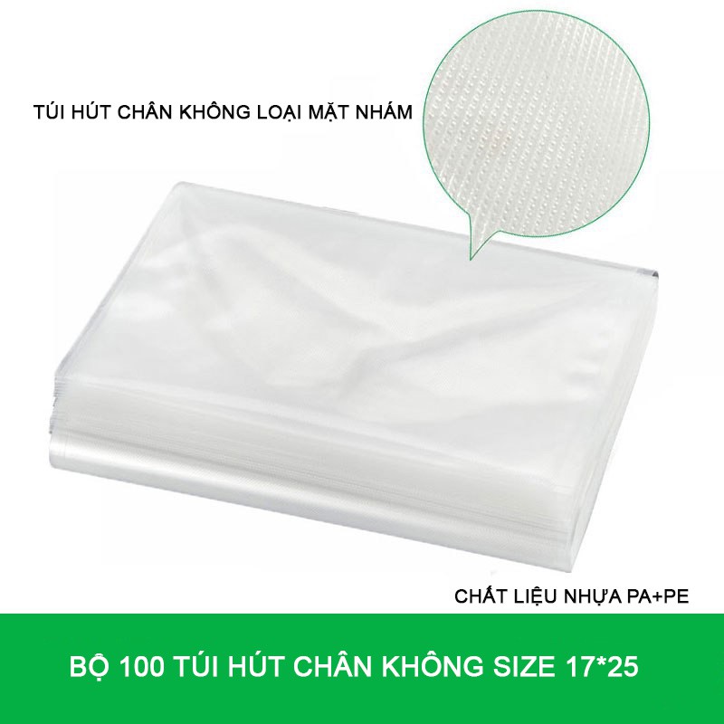 Bộ 100 túi hút chân không mặt nhám size 17x25