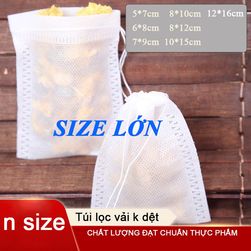 Nhà cửa & Đời sống > Dụng cụ nhà bếp > Dụng cụ pha trà, cà phê || 100 Túi lọc trà, gia vị hầm canh, chất liệu vải không dệt chuẩn thực phẩm, kèm dây rút size lớn nhiều kích thướcCòn hàng