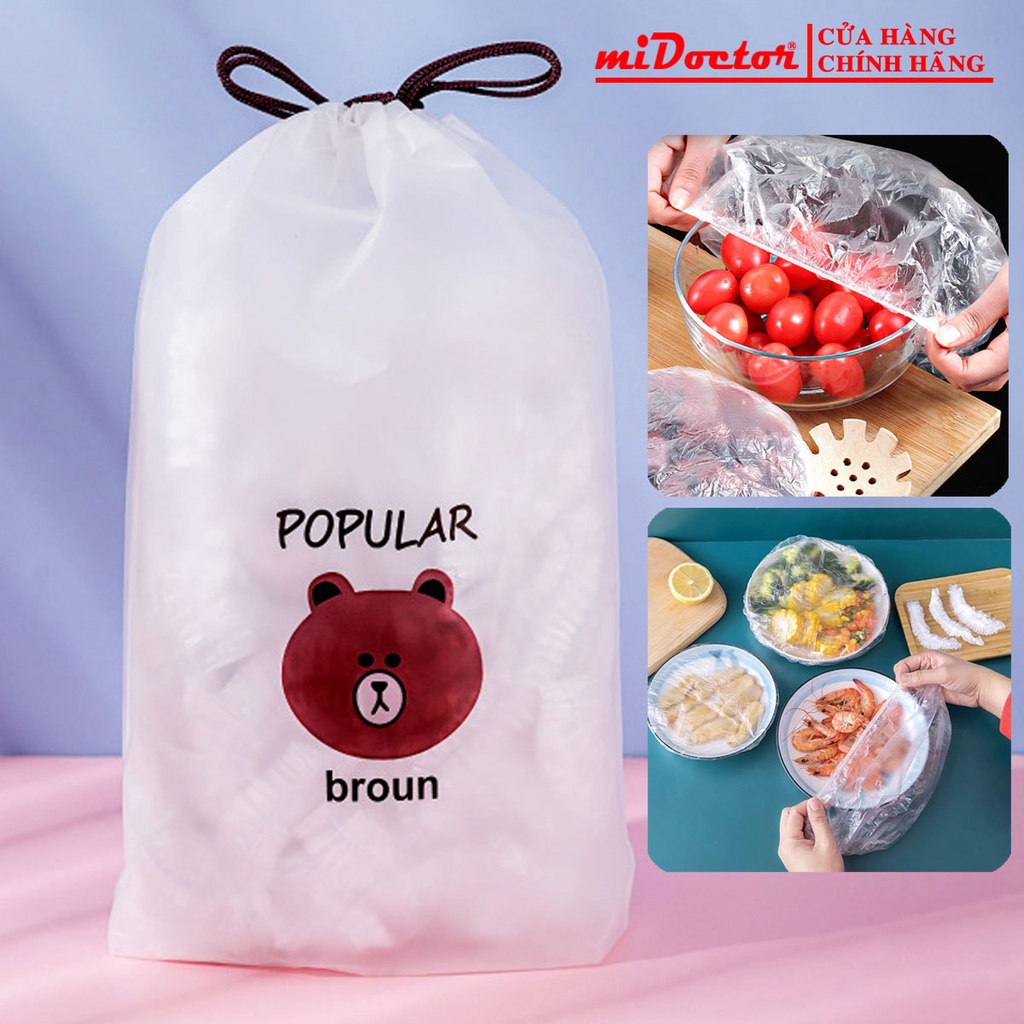Bộ 100 Túi Màng Bọc Thực Phẩm PE An Toàn Túi Gấu Có Chun Bọc Đồ Ăn Co Giãn Siêu Dai Cao Cấp Chính Hãng miDoctor