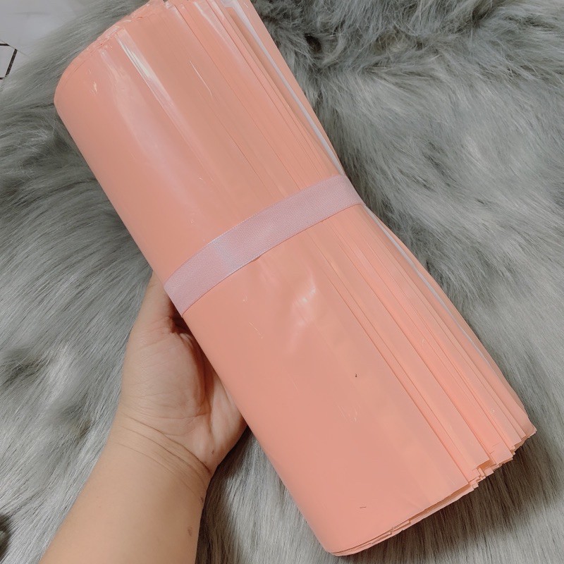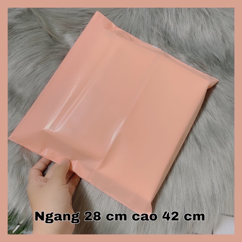 100 túi niêm phong ngang 28 cao 42 cm có sẵn keo dùng ship hàng quần áo màu hồng đào