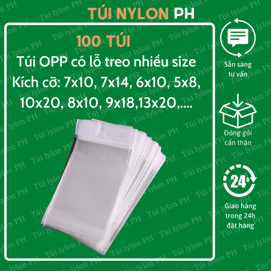 Nhà cửa & Đời sống > Dụng cụ chăm sóc nhà cửa > Túi nilon & túi rác || 100 túi Túi OPP có lỗ treo màng ngọc, túi bóng kính có lỗ treoCòn hàng