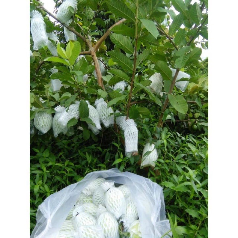 Phần lưới xốp đảm bảo cho trái ổi trách những tác động về cơ học gây trầy xước, giúp bề mặt trái thông thoáng trong lớp túi bóng, hạn chế thời tiết nắng làm quả bị rám.