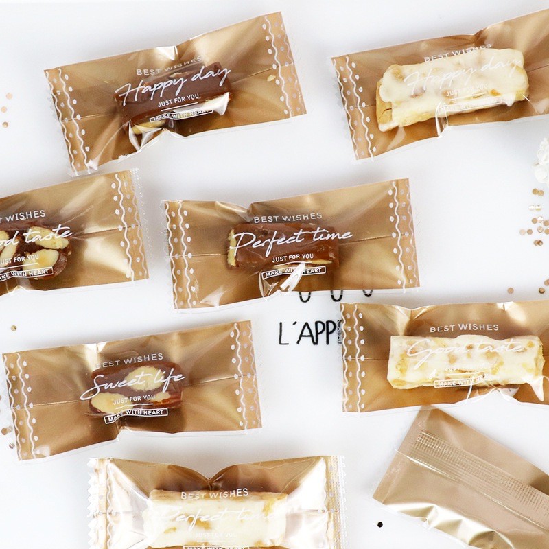 Nhà cửa & Đời sống > Dụng cụ nhà bếp > Dụng cụ nướng & trang trí bánh || 100 vỏ túi kẹo nougat 4x9cm mix 4 mẫuCòn hàng
