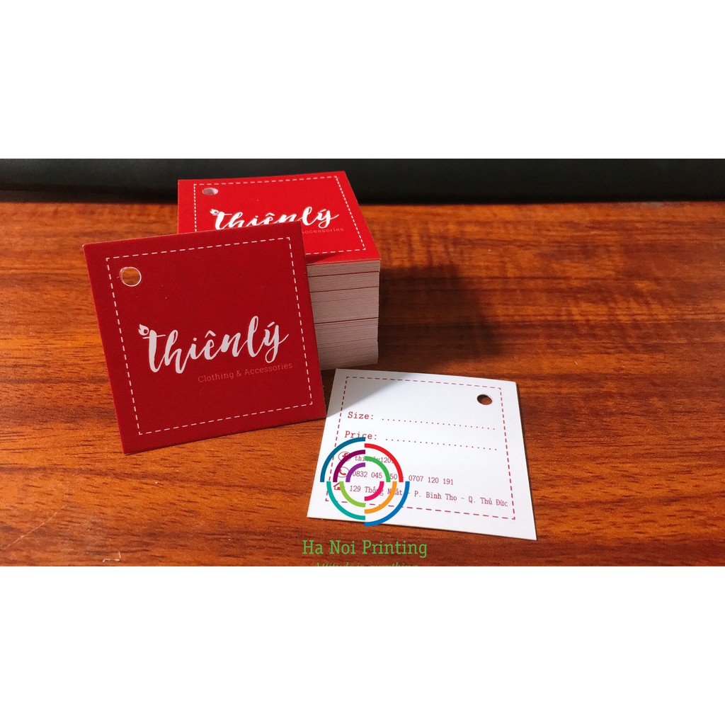 Tag kích thước vuông 5 cm , được in trên giấy Ivory 250 dày dặn cứng cáp, chuyên in BookMark - Tag quần áoShop có đục lỗ sẵn để shop về xỏ dây