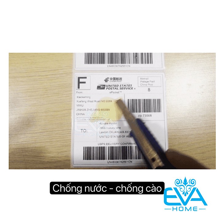 - Giấy in nhiệt thích hợp dán lên thùng hàng, chai lọ thủy tinh/nhựa, túi, đông lạnh...