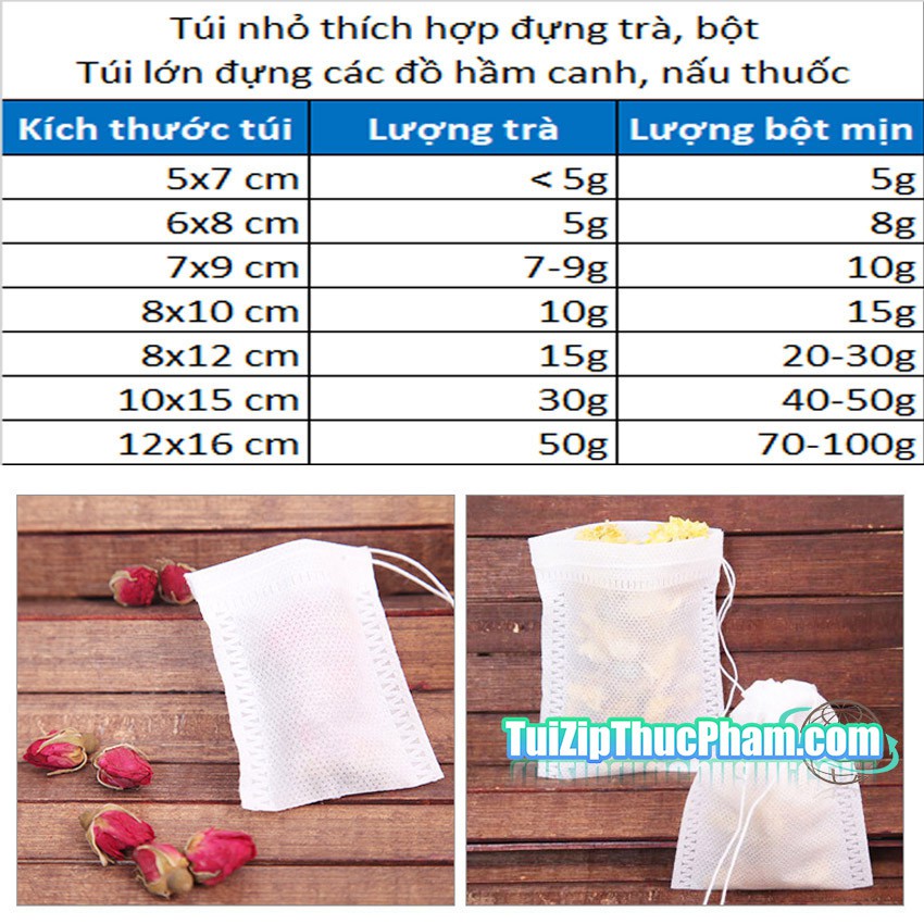 + Túi lọc size nhỏ chuyên dụng đựng các loại trà, bột mịn, túi lọc size lớn đựng các dược phẩm nấu thuốc, gia vị hầm canh, thảo dược spa...Tất cả các loại túi lọc đạt chuẩn thực phẩm