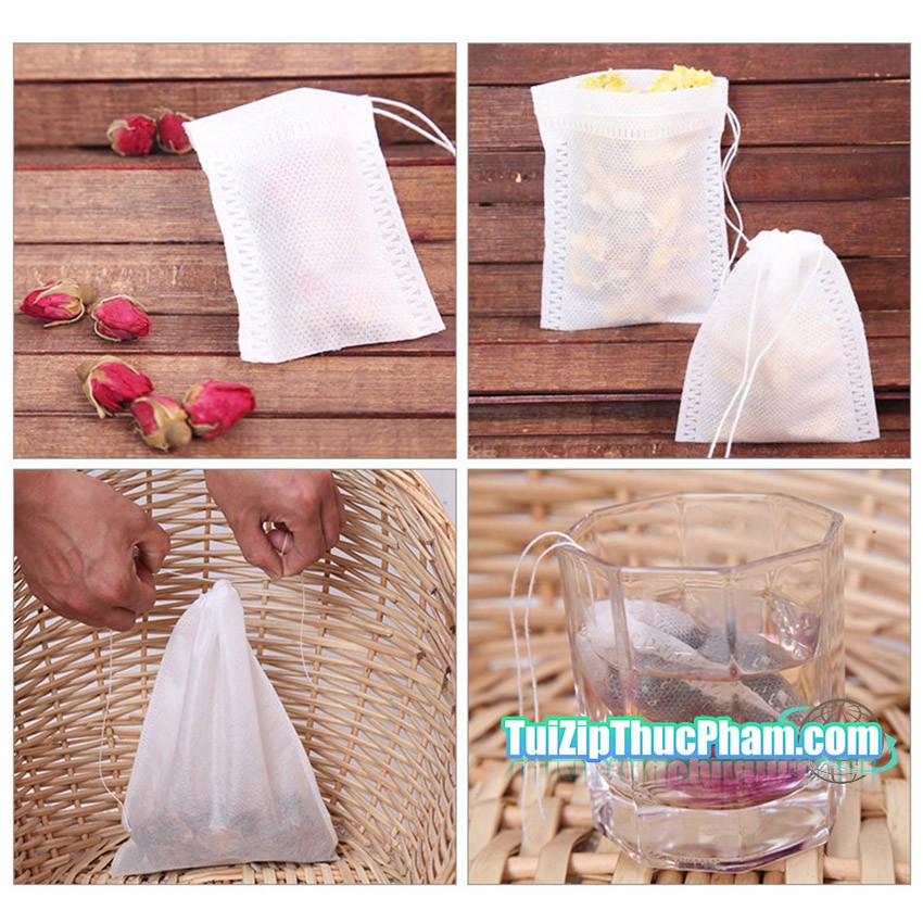 Giới thiệu 1000 Túi lọc trà dây rút size 10x15 cm chất liệu vải không dệt chuẩn thực phẩm bán sỉ giá xưởng
