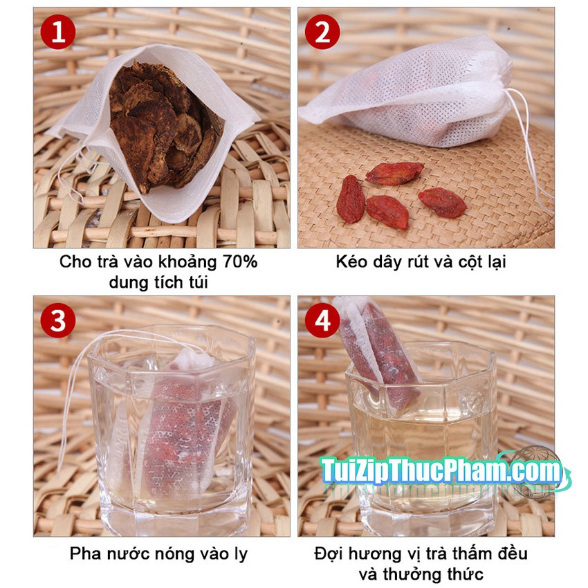 + Túi lọc size nhỏ chuyên dụng đựng các loại trà, bột mịn, túi lọc size lớn đựng các dược phẩm nấu thuốc, gia vị hầm canh, thảo dược spa...Tất cả các loại túi lọc đạt chuẩn thực phẩm