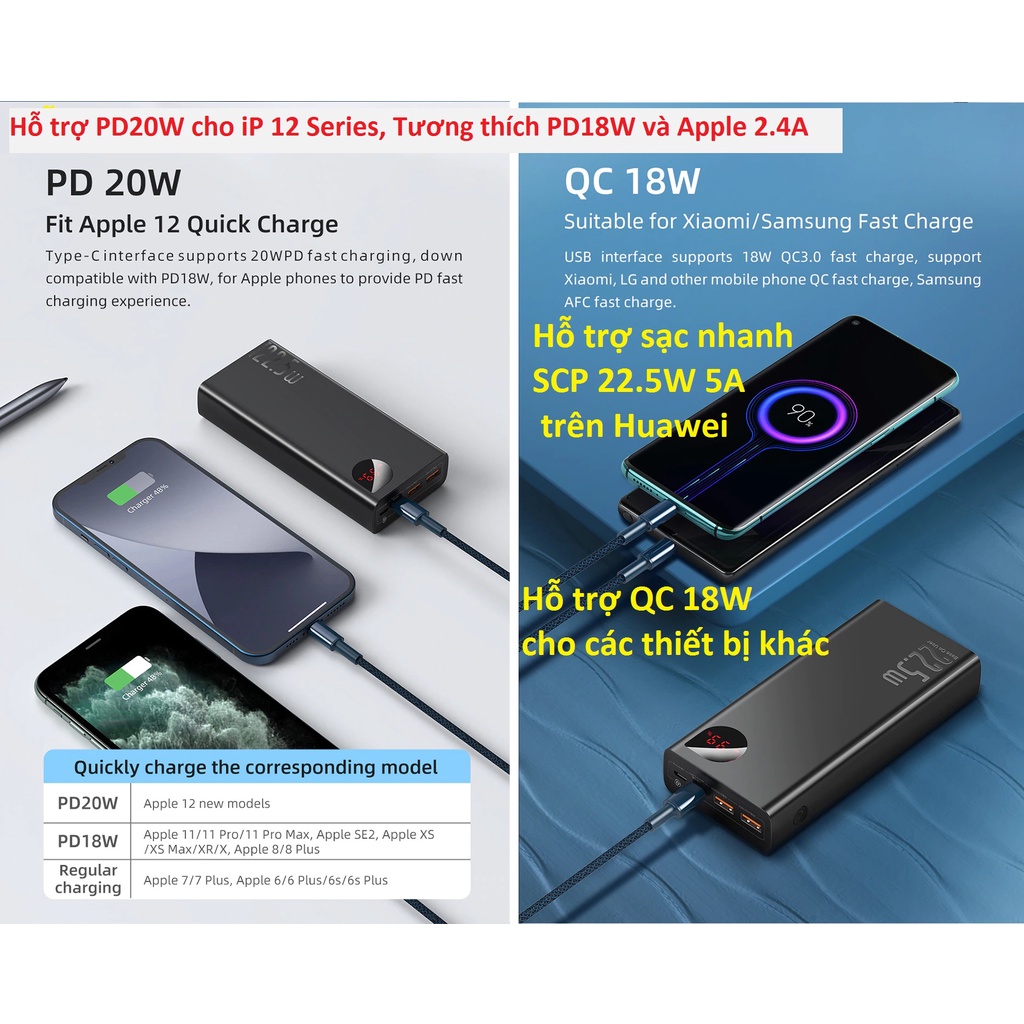 -Hỗ trợ sạc nhanh cả hai chiều, hỗ trợ các giao thức PD20W, PD18W, SCP 22.5W, QC 18W...