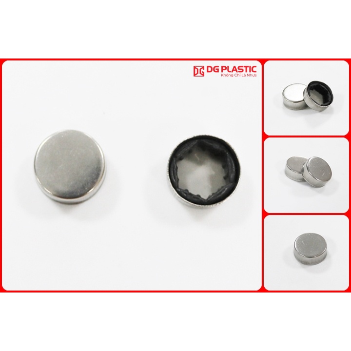 Sản phẩm chụp inoxNắp chụp đầu vít inox được sử dụng lắp tại đầu vít bắt ở chân trụ cầu thang. Chụp inox giúp vít tạo thẩm mỹ, giúp tránh nước mưa, hạn chế oxi hóa. Nắp chụp inox được DG Plastic sản xuất với chất liệu inox 304, đều đẹp sáng bóng.