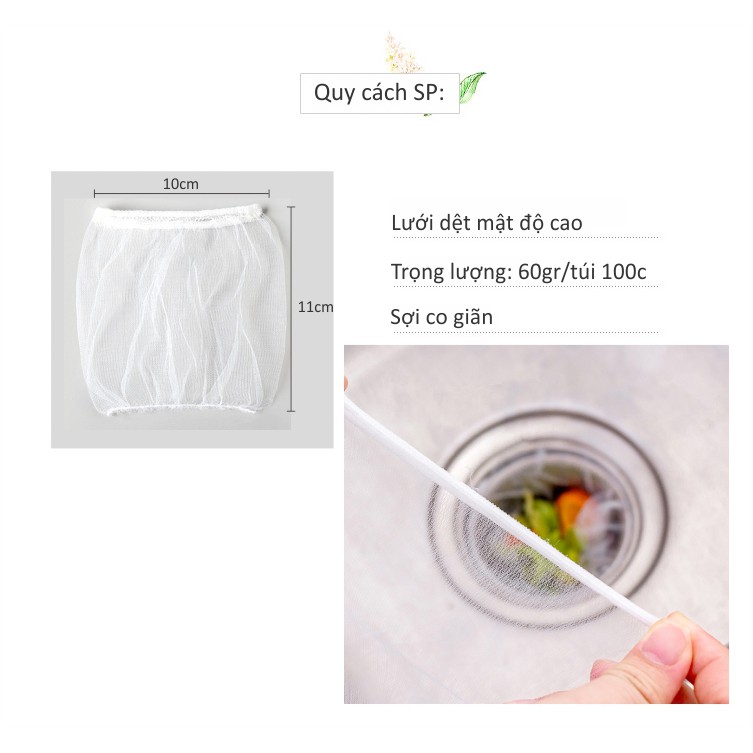 Túi LỌC RÁC bồn rửa bát miệng chun tiện lợi 100cKích thước: 10x11cm