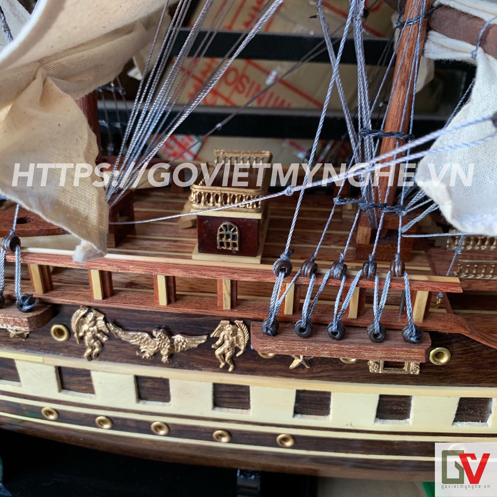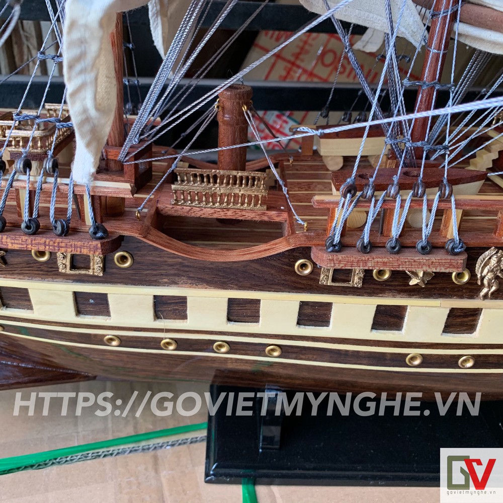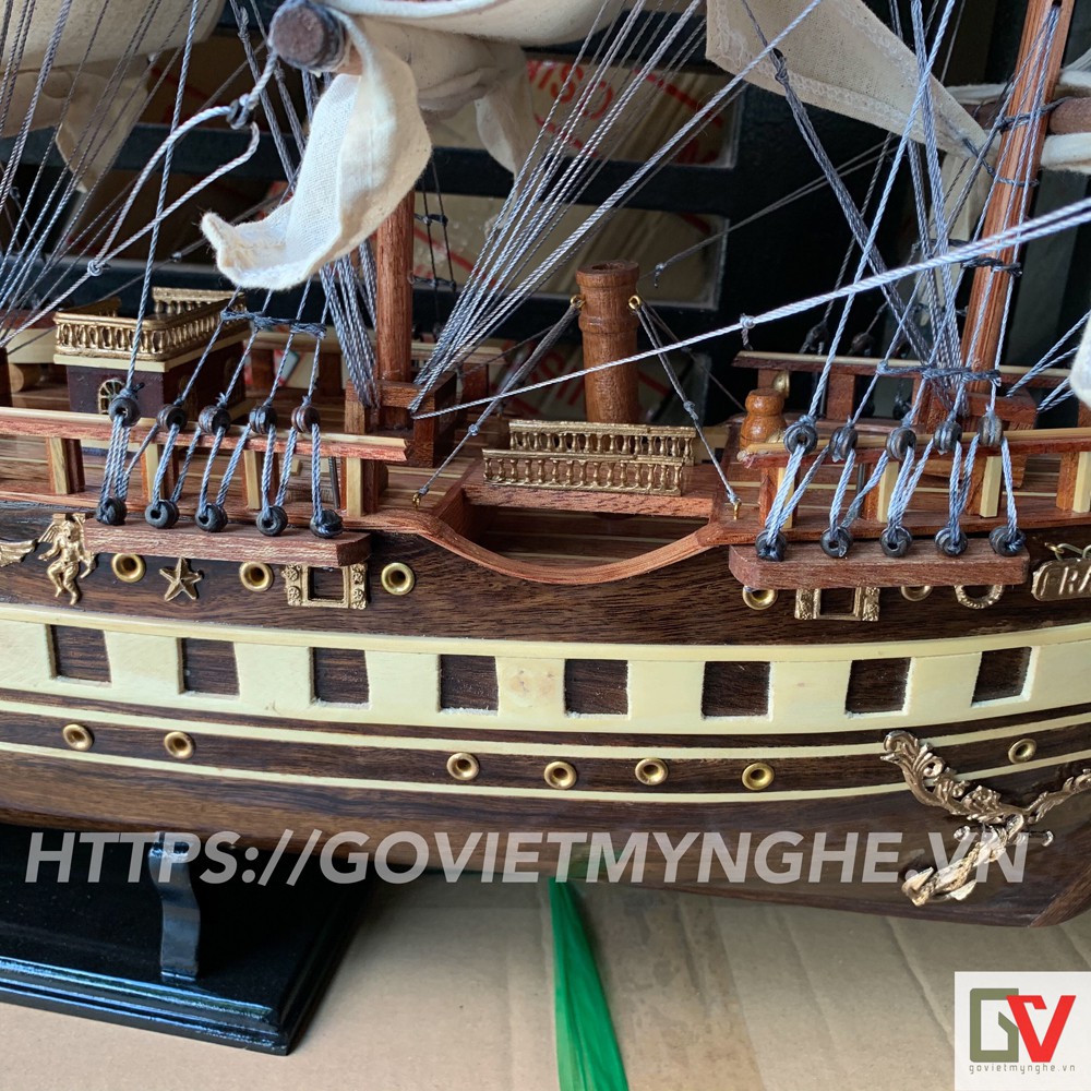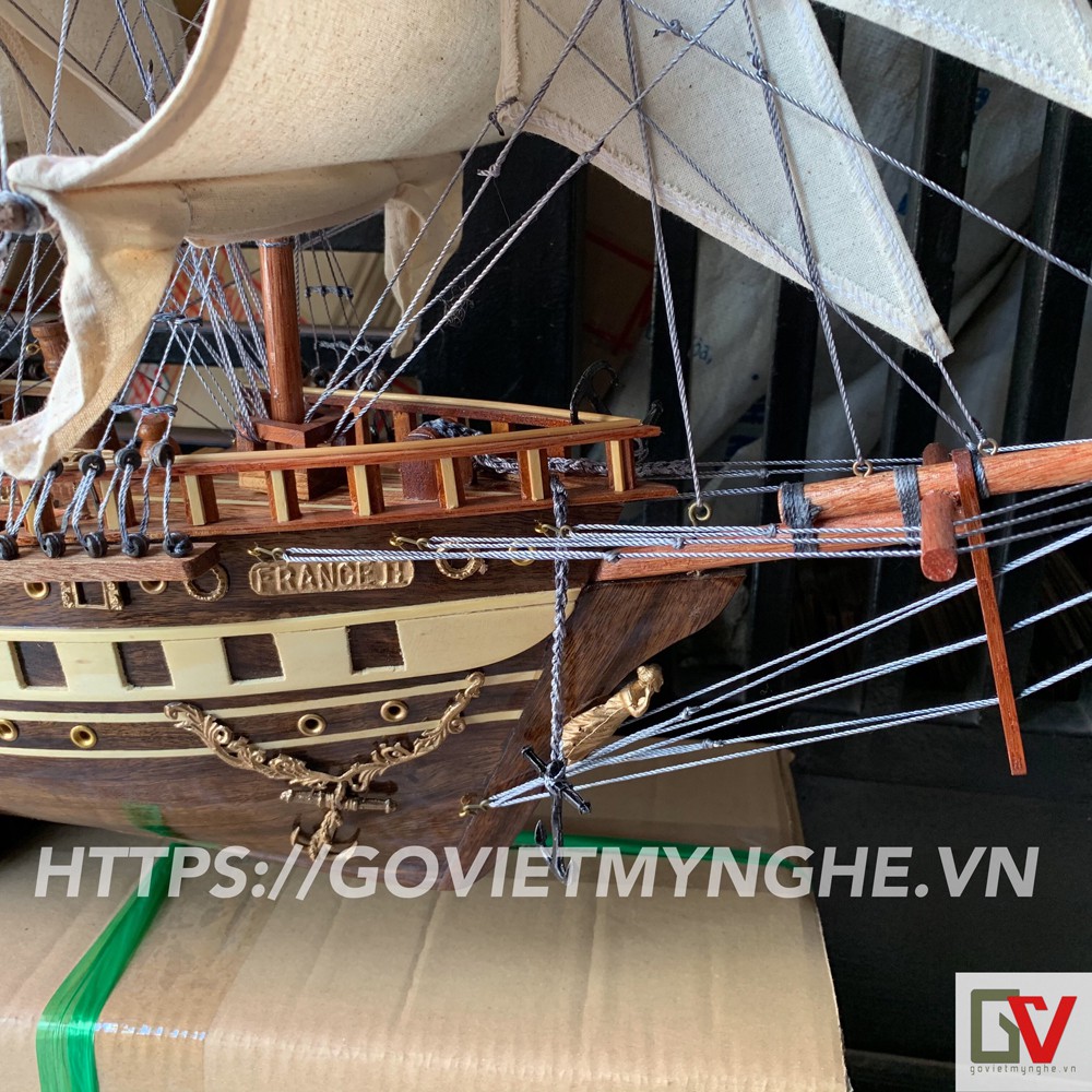 Giới thiệu [Dài 100cm] Mô hình thuyền gỗ thuyền trang trí tàu chở hàng France II - Gỗ muồng đen - Buồm vải- Loại xuất khẩu