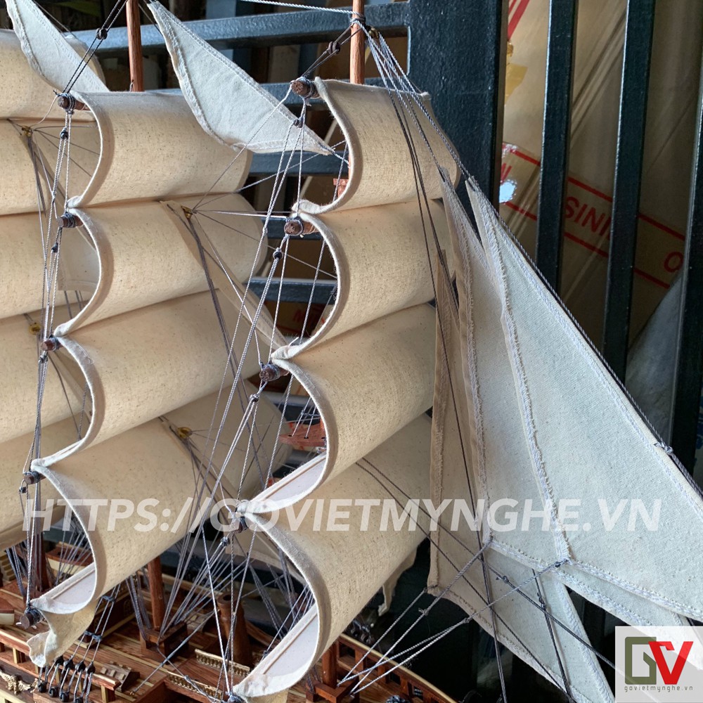 Nhà cửa & Đời sống > Trang trí nhà cửa > Khác || [Dài 100cm] Mô hình thuyền gỗ thuyền trang trí tàu chở hàng France II - Gỗ muồng đen - Buồm vải- Loại xuất khẩuCòn hàng