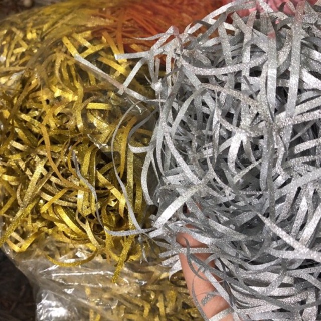 100g giấy rơm nhũ bỏ hộp quà giỏ quà tếtgiấy nhẹ nên được rất nhiều ạ