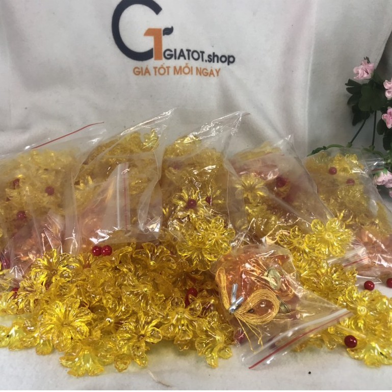 100gram/ bịch, hoa nhựa 5 cánh (có kèm dây , nhụy đỏ, thỏi ngọc, tiền xu) ngẫu nhiêu