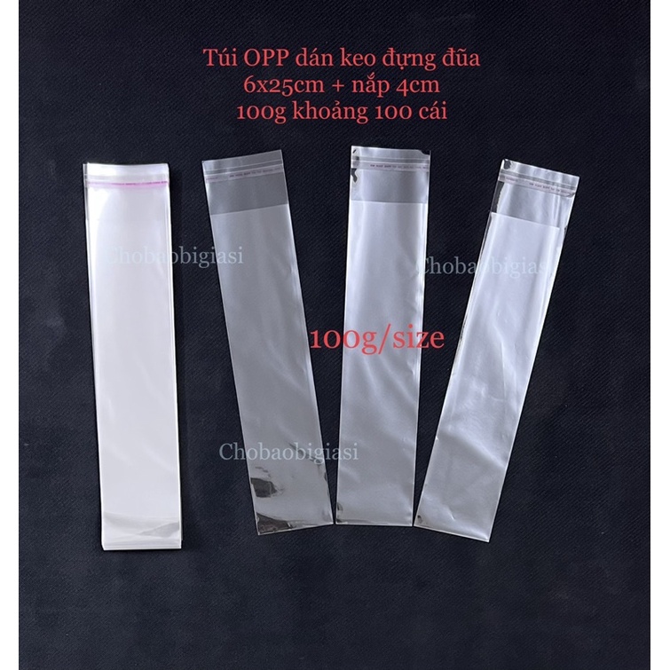 Nhà cửa & Đời sống > Dụng cụ chăm sóc nhà cửa > Túi nilon & túi rác || 100g Túi OPP dán keo đựng đũa, muỗng, khăn, tăm 6x25cm + nắp 4cm (hàng đẹp - Sp y hình)Còn hàng