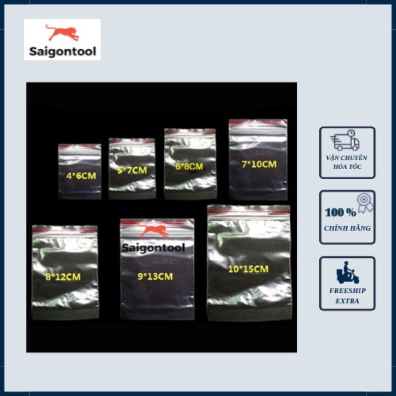 100G Túi zip trong viền đỏ (Zipper). Số a thì miệng túi là a cm, dài 1,5a cm nha cả nhà. Ví dụ: số 10 là ngang 10cm dài khoảng 15cm.