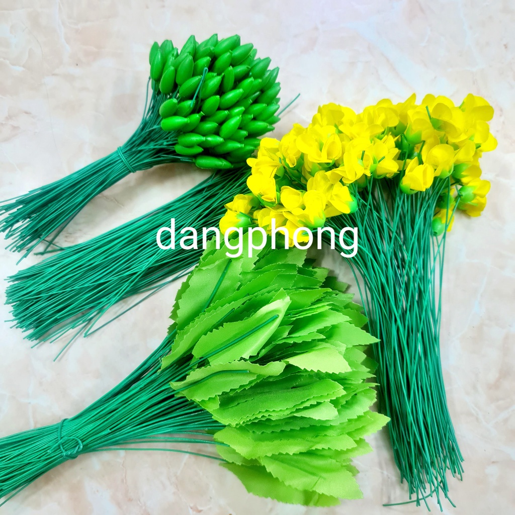 Giới thiệu 100gr kẽm, lá,nụ,búp vàng gắn hoa mai ,hoa đào giả trang trí tết