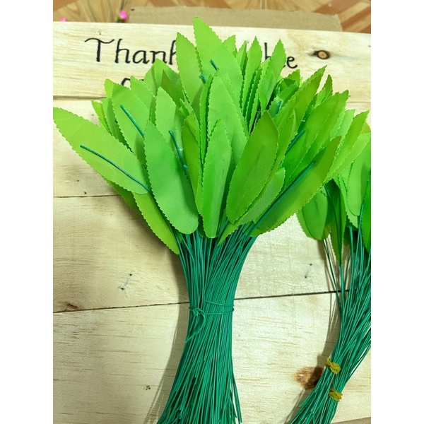 100 gram, 200 gram, 300 gram, 500 gram lá hoa mai đào trang trí ngày TếtLá bằng vải lụa đẹp có gắn sợi kẽm xanh dài 15cm để quấn lên cây hoa, lá đẹp nhìn rất tự nhiên và dễ thương