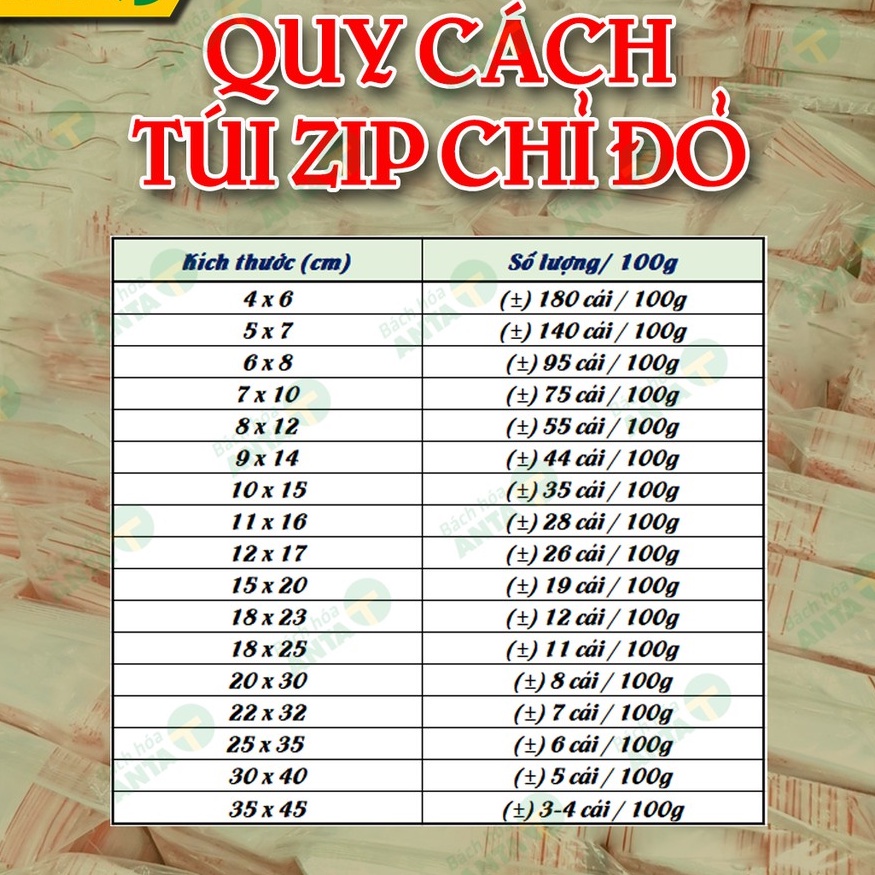 Nhà cửa & Đời sống > Dụng cụ chăm sóc nhà cửa > Túi nilon & túi rác || 100gram Bịch Túi Zip Chỉ Đỏ Đựng Gia Vị, Thực Phẩm, Thuốc Tây, Loại Tốt, Dày - Ấn Vào Chọn SizeCòn hàng