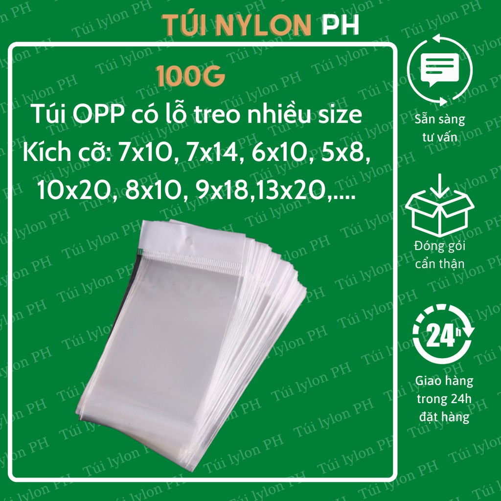 Nhà cửa & Đời sống > Dụng cụ chăm sóc nhà cửa > Túi nilon & túi rác || 100gram Túi OPP có lỗ treo màng ngọc, túi bóng kính có lỗ treoCòn hàng