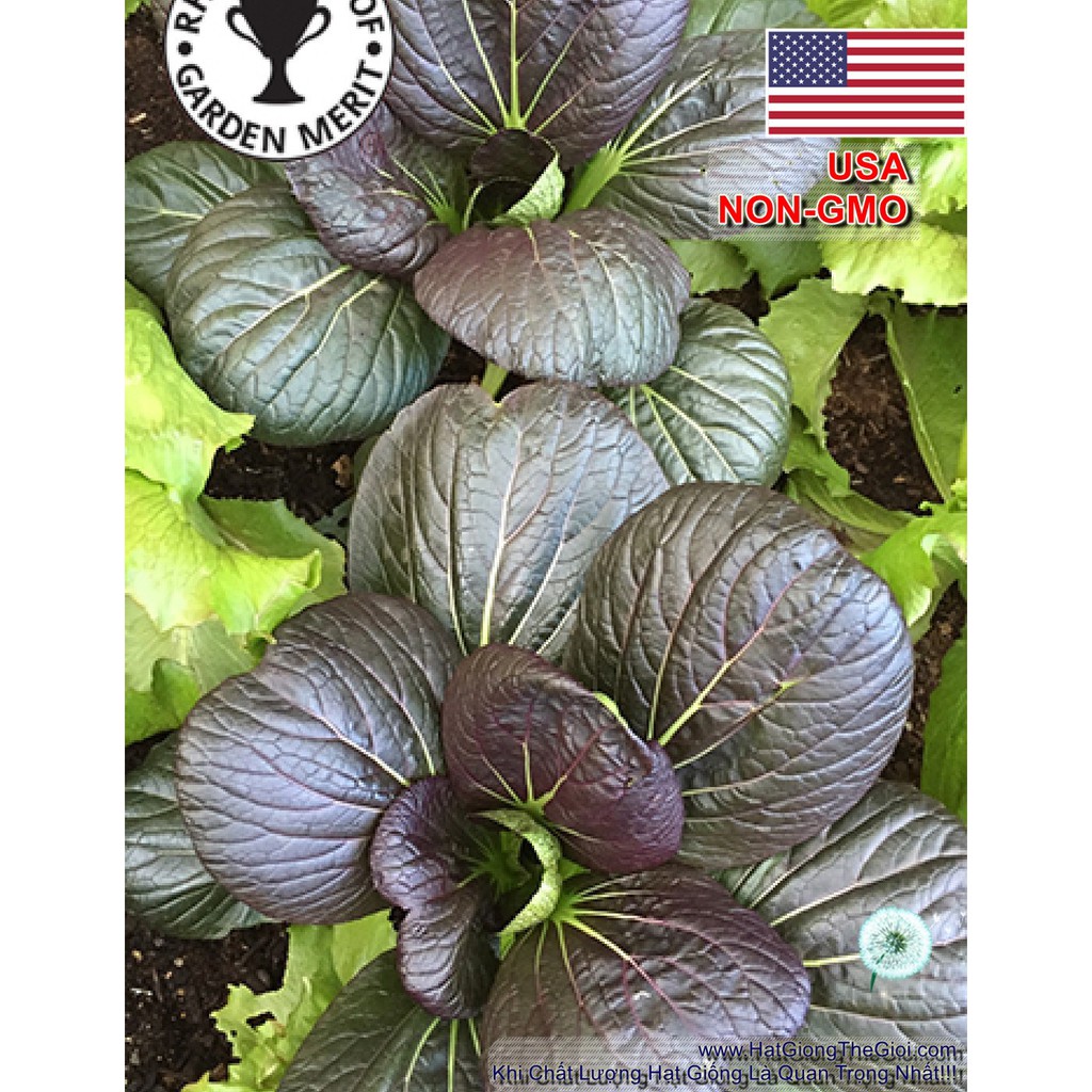 Gói 100 hạt.Cải Thìa Đỏ - F1 (Brassica rapa chinensis) lá đỏ đẫm mặt trên và xanh mặt dưới. Khi trưởng thành, phần cuống là xanh sáng. Ăn rất ngon. 50 ngày. Cải Thìa còn gọi là Cải Bẹ Trắng, Bạch Giới Tử, hay trong tiếng Anh: Pak Choi, Bok Choy, có danh pháp khoa học: Brassica rapa chinensis, thuộc họ Cải Bắp Dại, có nguồn gốc từ vùng sông Dương Tử, Trung Quốc. Cải Thìa đứng thứ 2 trong danh sách 41 những thực phẩm cô đặc chất dinh dưỡng nhất thế giới, rất giàu về Vitamin A, C và K, cung cấp theo nhu cầu hàng ngày lần lượt là 30%, 54% và 44% rất quan trọng trong hoạt động thần kinh, mắt, trí não và hấp thu xương; và lượng vừa phải acid Folic, Vitamin B6 và Canxi ở mức 10 - 17% nhu cầu hàng ngày. Cải còn chứa nhiều chất Glucosinolates được cho là có khả năng chống ung thư khi tiêu thụ với lượng vừa phải (tiêu thụ nhiều quá ở mức 1 - 2 kg/ người/ ngày sẽ không tốt).