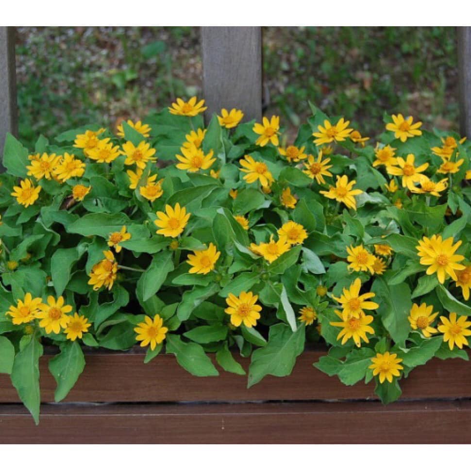 Cây hoa cúc mặt trời có hoa mọc ra từ kẽ nách của lá, hoa có màu vàng tươi rất nổi bật và bắt mắt. Hình dạng của bông hoa cúc mặt trời có dạng hơi giống với hoa hướng dương, tuy nhiên bông hoa nhỏ hơn hoa hướng dương rất nhiều lần. Loài hoa này có đặc điểm là có thể cho ra hoa quanh năm, cực sai hoa lại rất dễ chăm sóc.
