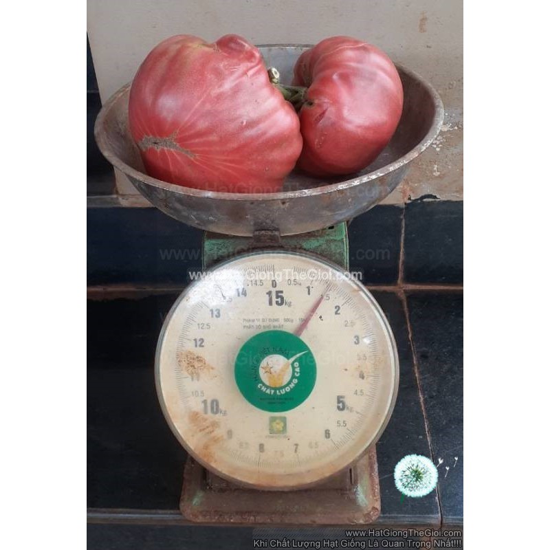Khách của HGTG đã trồng thành công như hình đính kèm. CHỈ HGTH CÓ NHỮNG TẤM HÌNH NÀY.Cà Chua - Ngọt Đại 200KCD Belgium (Solanum Lycopersicum) 82- 90 ngày, OP, cho trái nặng trung bình 450gr - 1kg, một số cá biệt nặng đến 2.5kg. Hương vị nhẹ và độ ngọt cao đến độ có thể dùng làm rượu vang. Thịt rất chắc. Cà Chua có tên tiếng Anh: Tomato, tên La Tinh: Solanum lycopersicum, thuộc họ Bạch Anh, có nguồn gốc từ Trung và Nam Mỹ. Hay được dùng như rau, nhưng Cà Chua được xếp vào thực vật Trái Cây. Cà Chua là dòng thực phẩm rất bổ dưỡng, đứng thứ 11 trong top Chất Lượng Dinh Dưỡng Tổng Thể đánh giá bởi đại học Yale, đạt 96/100 điểm chỉ sau rau Cải Xanh; tuy rằng hơi khiêm tốn về Độ Cô Đặc Dinh Dưỡng ở mức 20.37/100 điểm nhưng cũng rất tuyệt; là thực phẩn tập trung nhiều Lycopene nhất (chất chống Ung Thư, đặc biệt là Tetra-cis lycopene giàu trong Cà Chua vàng, cam), cung cấp nhiều Vitamin C (17%), Vitamin B nhiều loại. Vitamin K (8%), và những chất chống oxy hóa quan trọng (ngoài Lycopene) được cho là giảm nguy cơ tử vong do ung thư, tim mạch, giúp mắt sáng như: beta-carotene, Vitamin B, ...