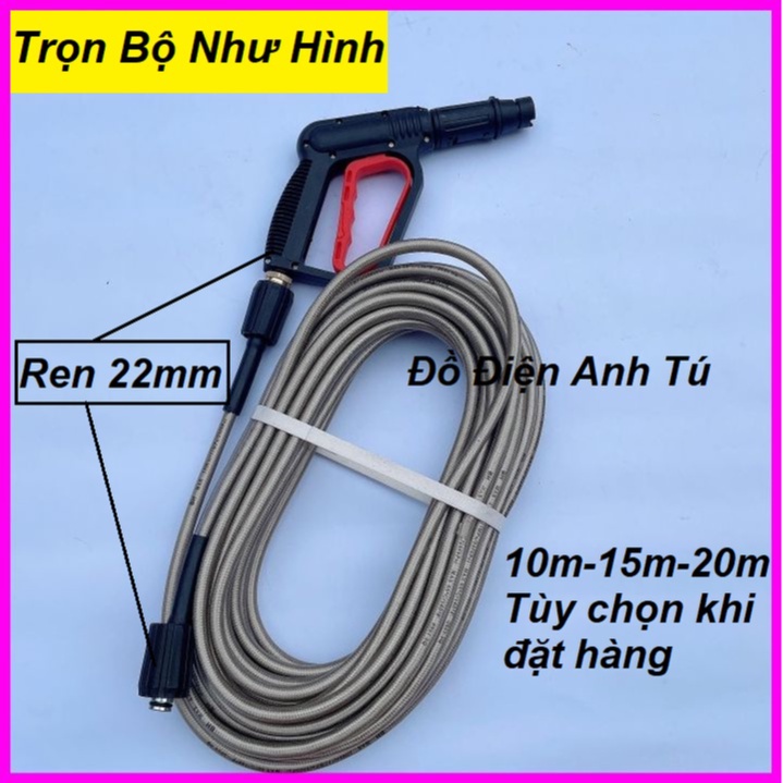 Bộ 10M-15M-20M-30M dây rửa xe và súng xịt - súng rửa xe áp lực cao ren 22mm