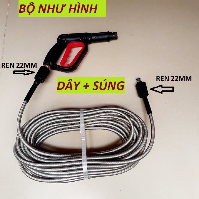 Bộ 10M-15M-20M dây rửa xe và súng xịt - súng rửa xe áp lực cao ren 22mm