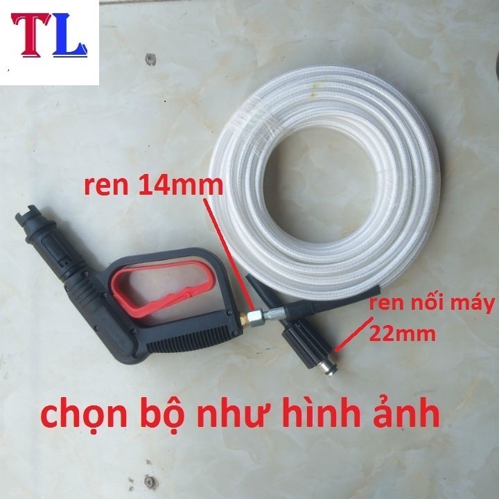 Bộ 10m 15m 20m dây rửa xe và súng xịt - súng rửa xe áp lực cao ren 14mm
