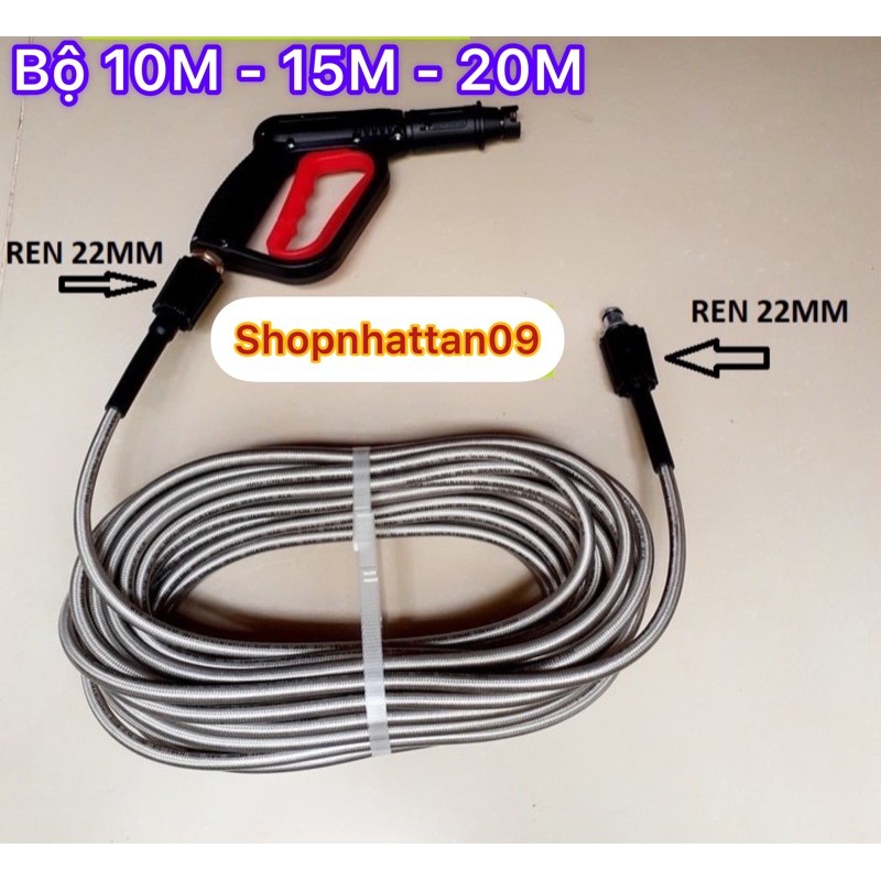Bộ 10M-15M-20M- dây rửa xe và súng xịt - súng rửa xe áp lực cao ren 22mm