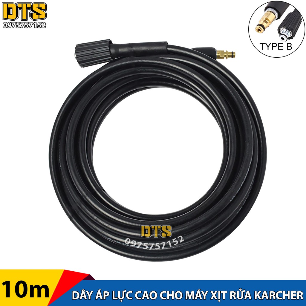 10m Dây áp lực máy rửa xe Karcher - Dây phun thay thế máy xịt rửa áp lực Karcher K2 - K7 (1 đầu nối nhanh & 1 đầu vặn)