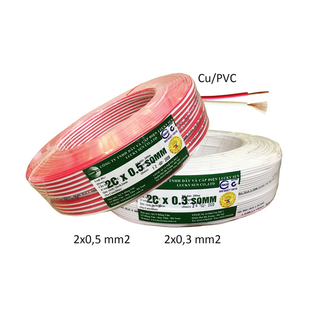 Giới thiệu 10m Dây điện đôi sup dính đôi 2x0,3 2x0,5 mm2 Cu/PVC Lucky-Sun W8-2x